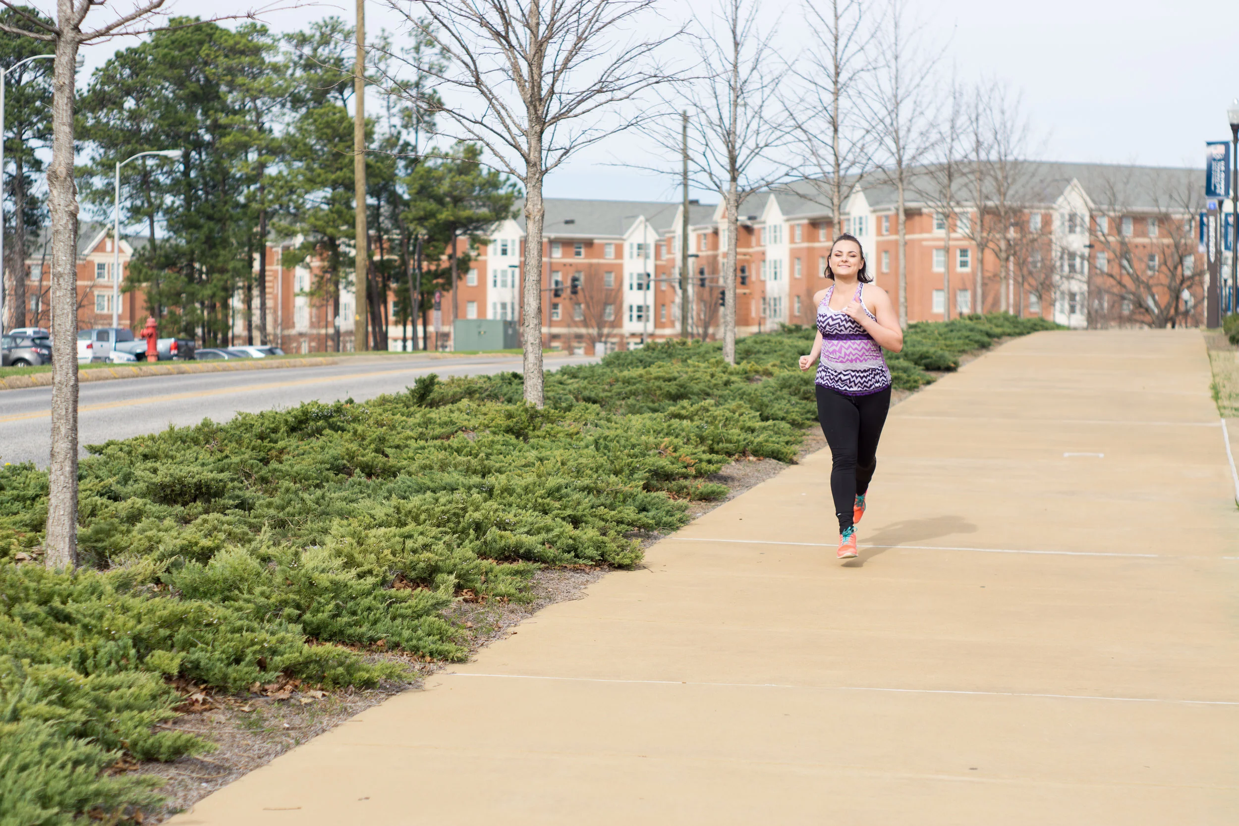 Head toward South Gay Street along Woodfield Drive. At the four-way stop, turn left to continue running on Gay Street. This is such a great road to run on. It has the perfect mix of inclines and declines, and the scenery is beautiful. At the end of the road, you’ll approach the light at Samford and Gay. This is your first mile!