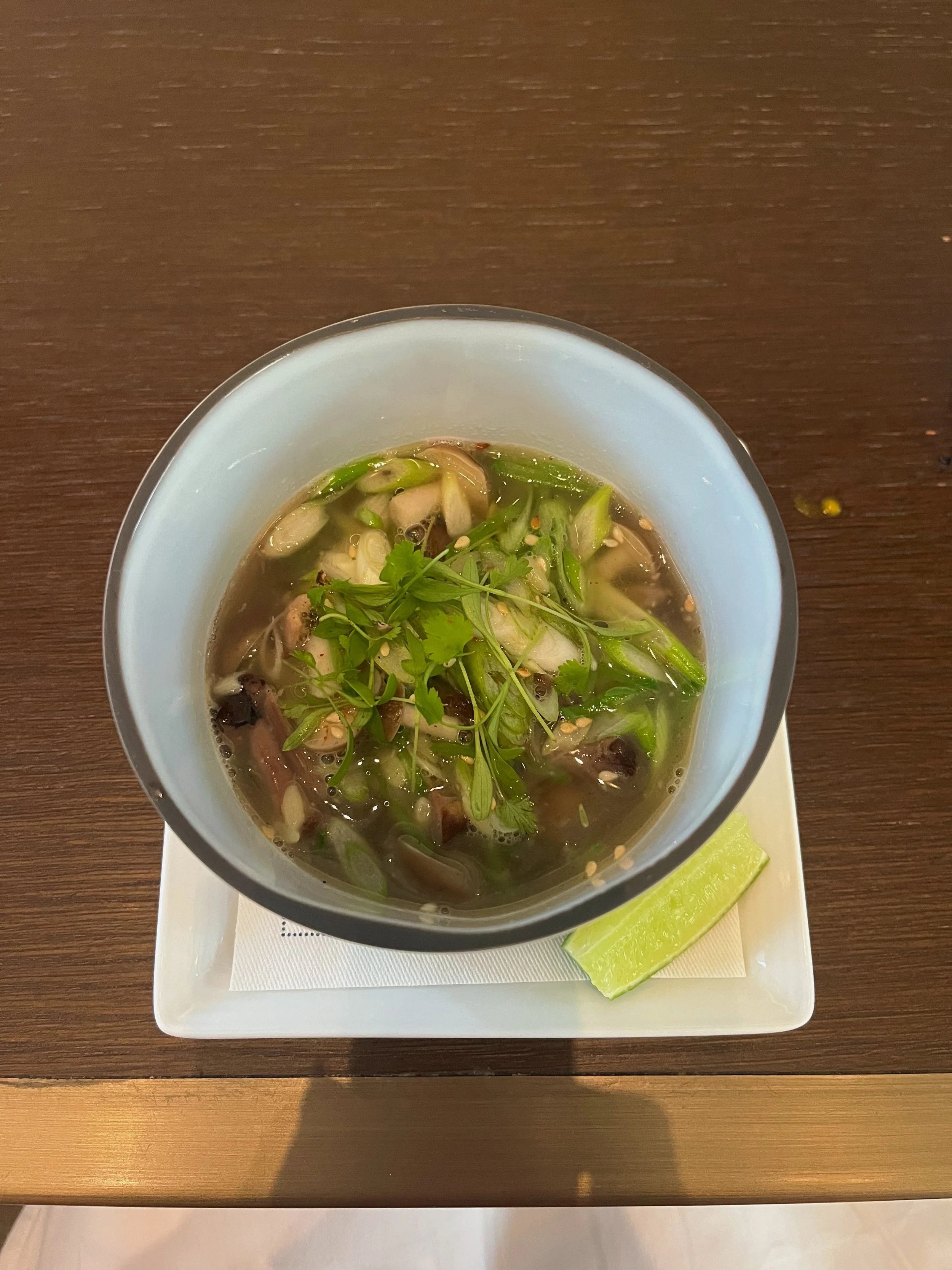 Another amazing dish. The Pho had mini mushrooms, cilantro, leeks, and oxtail. The base was gingery and salty, while the fresh lime wedge gave the pho a fresh, citrusy kick.