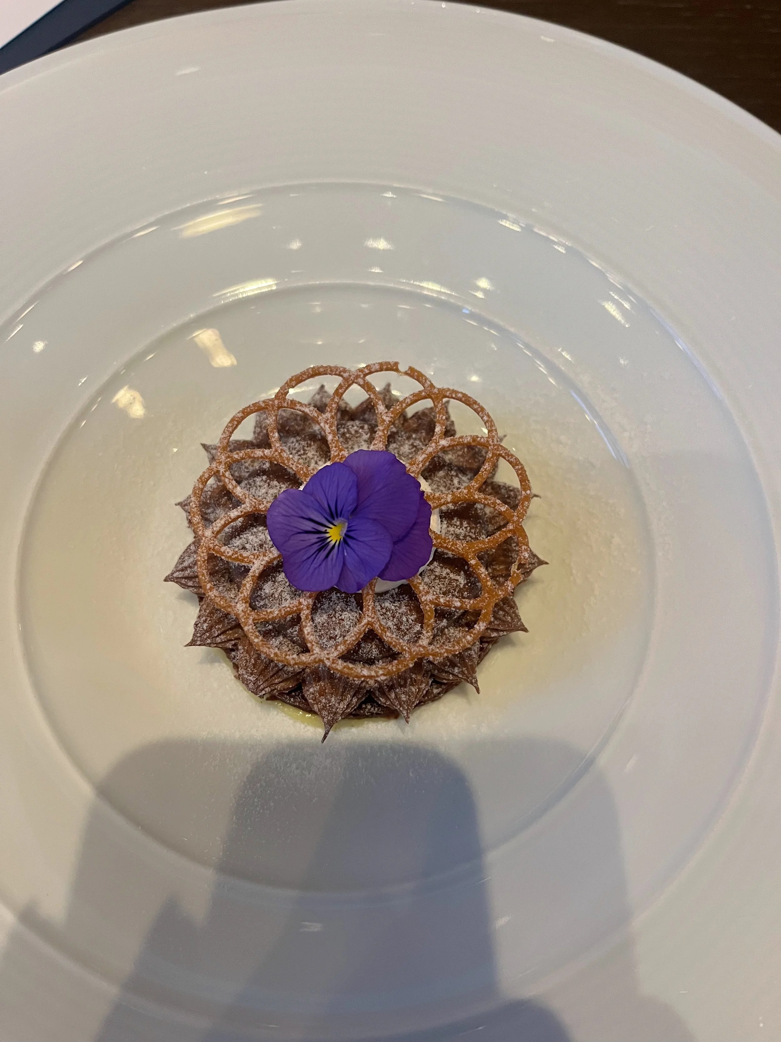 As a chocolate lover, this dessert was everything I could wish for. It included a crispy chocolate base, chocolate mousse, whipped vanilla bean ganache, and a super sweet honeycomb lacing! I’ll definitely be thinking about this dessert for a long time.